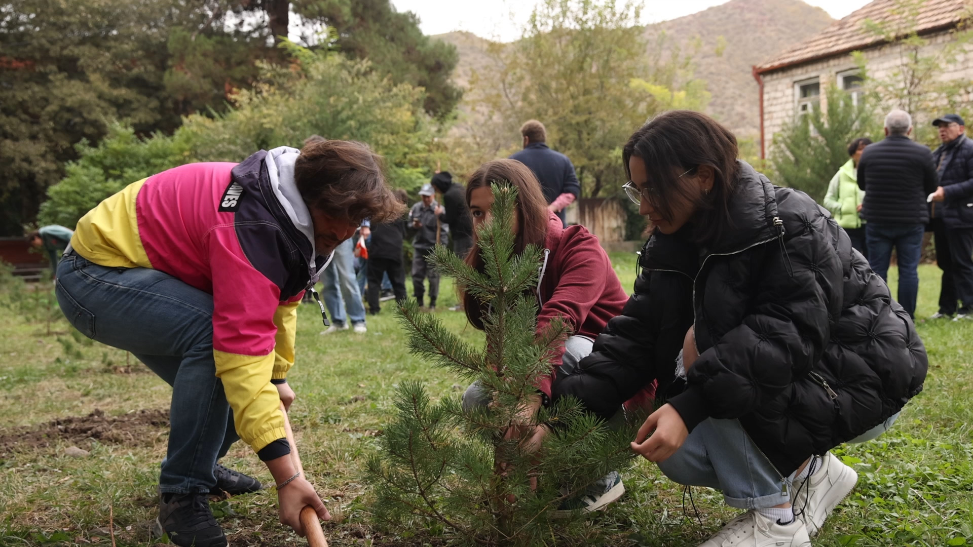 As part of the International Day of Tree Planting celebration, the National Forestry Agency organized a tree-planting event in the yard of Misaksiel's public school. As part of the "Plant a Tree" campaign by the National Forestry Agency, around 20 conifer species seedlings were planted in the area surrounding the school. Schoolchildren were joined by well-known public figures such as civil activists, journalists, actors, and sportsmen to participate in the campaign. The students of the school will be responsible for maintaining the plants. The event aims to raise public awareness regarding forest maintenance and preservation.