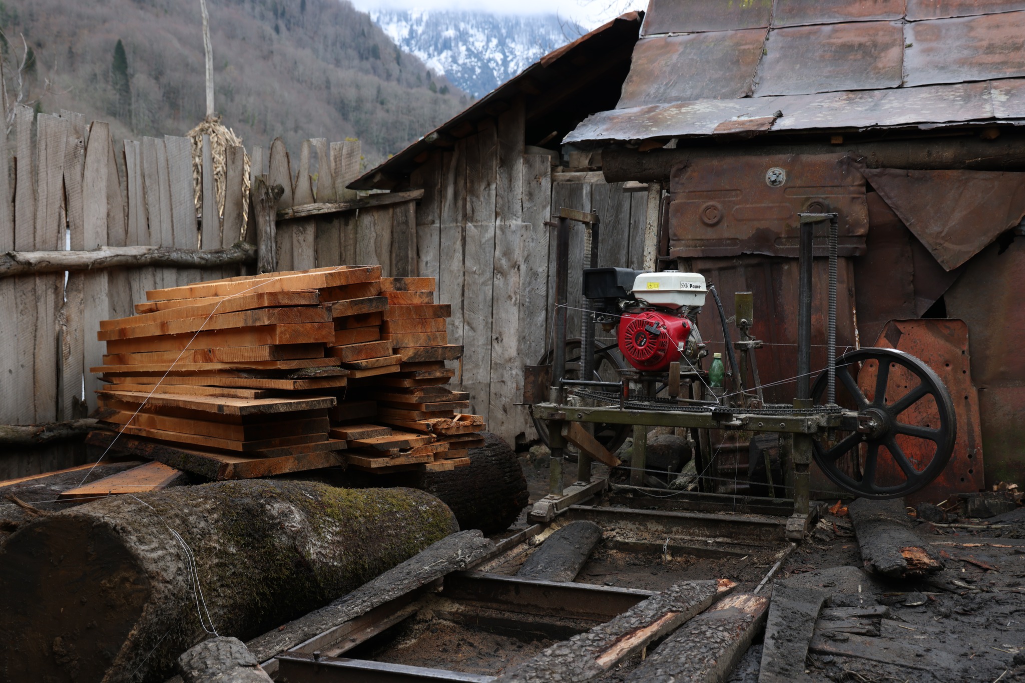 Employees of the Guria Forestry Service discovered an unregistered sawmill and illegally harvested deciduous species of wood in the village of Surebi, Chokhatauri municipality. The violator transported the illegally harvested hardwood to the sawmill for processing with a truck. In the workshop area also was found a primary processing product (plank). The unregistered sawmill and truck were sealed. Since the case contains signs of a criminal offense, the materials were sent to the Ministry of Internal Affairs for further proceedings.