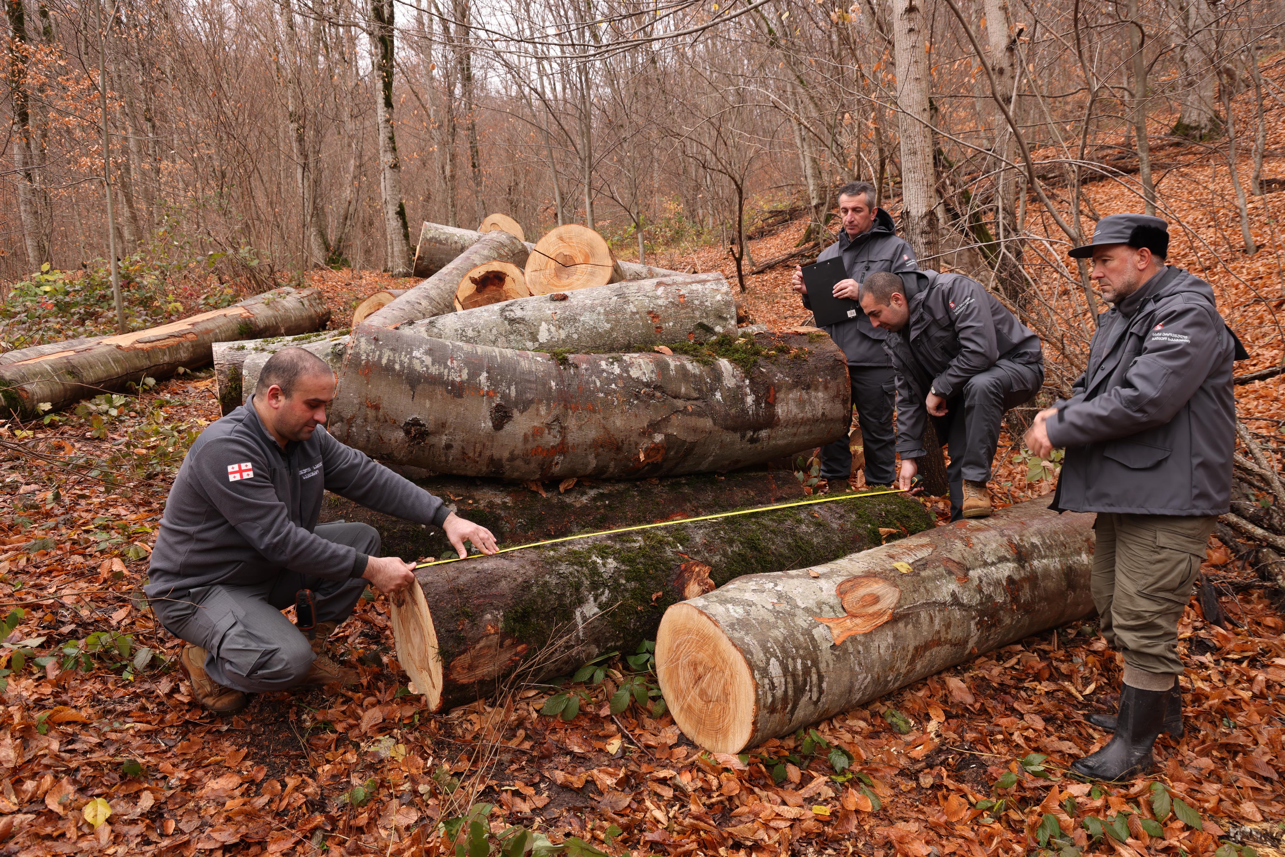 The unregistered sawmill has been sealed, and the illegally harvested construction timber will be transported to the Akhmeta “business yard” for further processing and disposal.