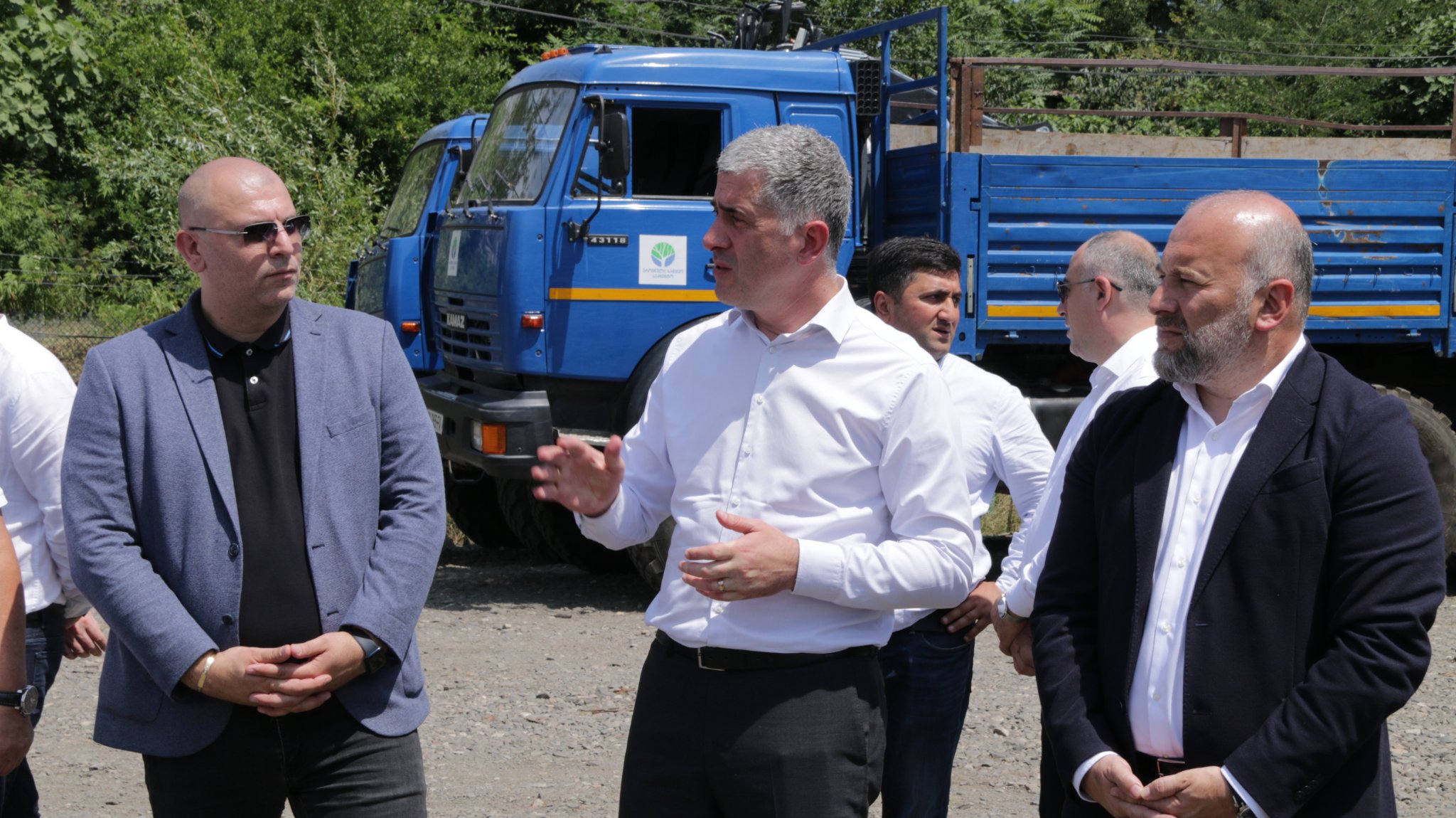 Minister of Environment and Agriculture Otar Shamugia and Minister of Labour, Health and Social Protection Zurab Azarashvili met the employees within the framework of the employment program in the "business yard" of Zestafoni and got acquainted with their working conditions. The "business yard" of Zestafon was opened in September 2020.