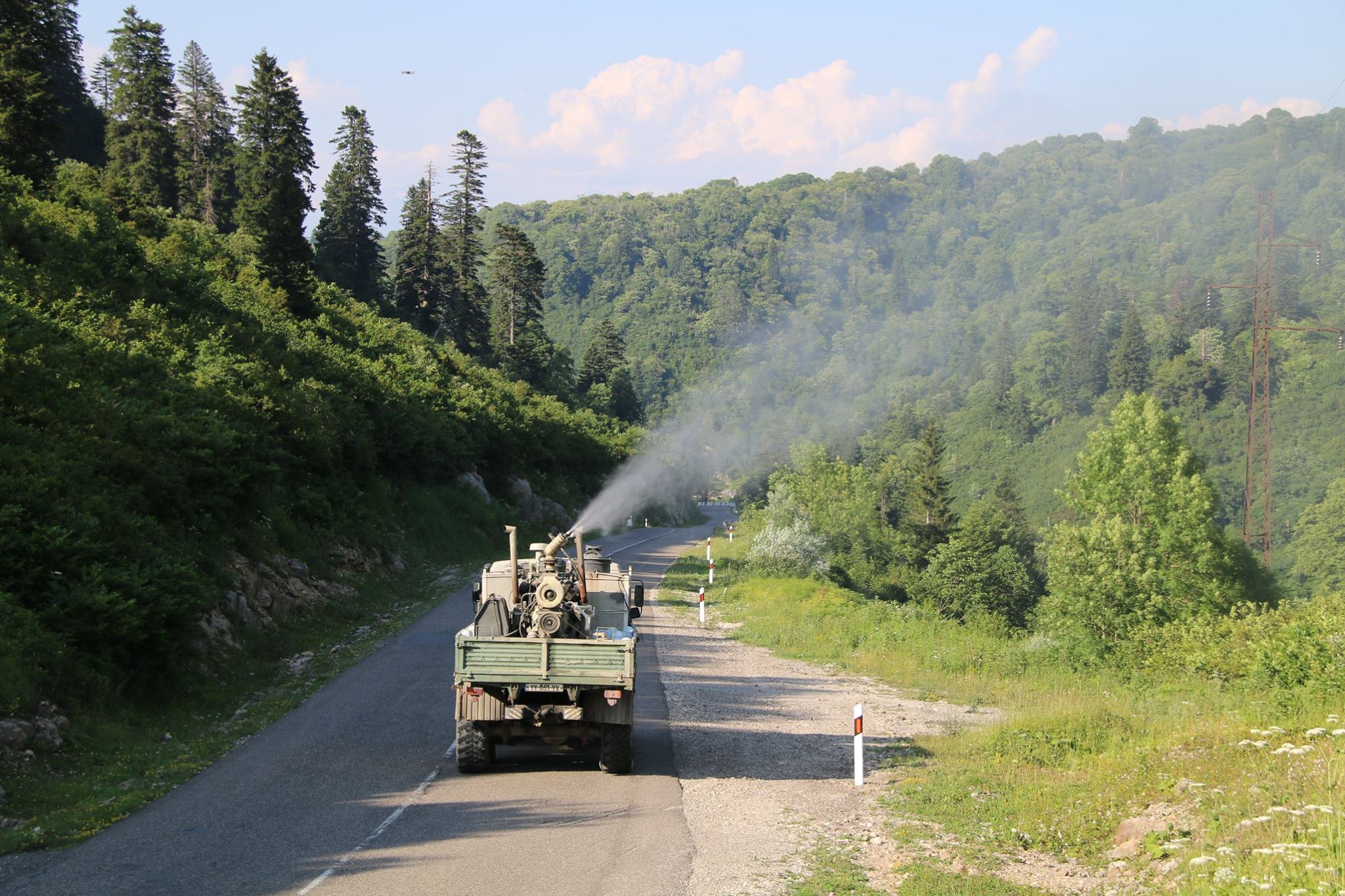 Treating Buxus Colchica with pesticides on Nakerala mountain pass