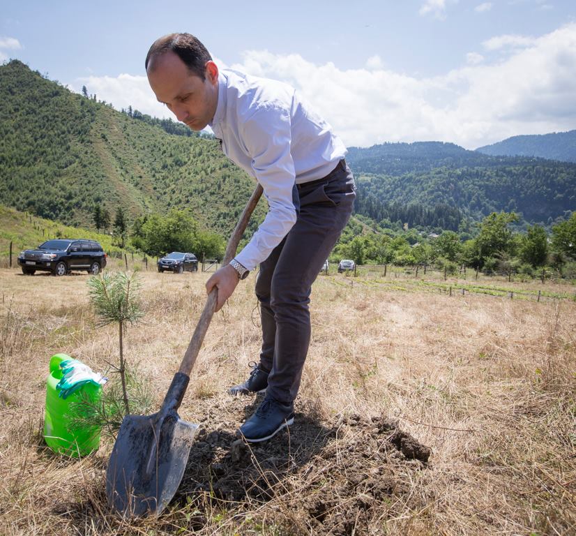 The Minister of Environment Protection and Agriculture Levan Davitashvili visited Samtskhe-Javakheti region where he along with regional governor Kakha Samkharadze introduced forest restoration project in the village of Daba damaged by fire in August 2008 and 2017 to the representatives of electronic and print media on the spot. Rehabilitation works will start in September of this year.