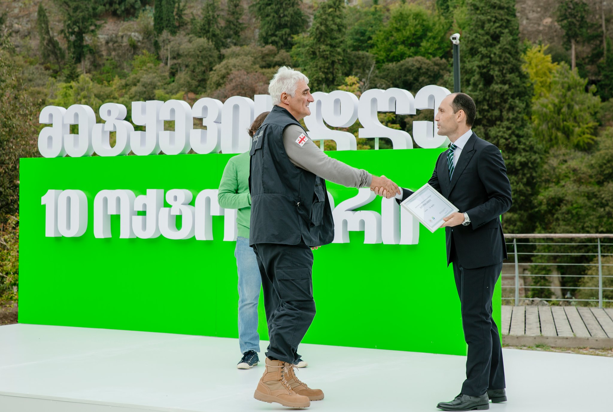 На мероприятии присутствовали специалисты лесного дела профессионального училища Качрети и Ахалцихе и прошедшие переподготовку в Национальном лесном агентстве лесники-таксаторы, которые трудоустроены в работах инвентаризации. Начальник национального лесного агентства поблагодарил известных в общественности людей - актеров, спортсменов и журналистов за активное участие в информационных кампаниях лесного агентства.