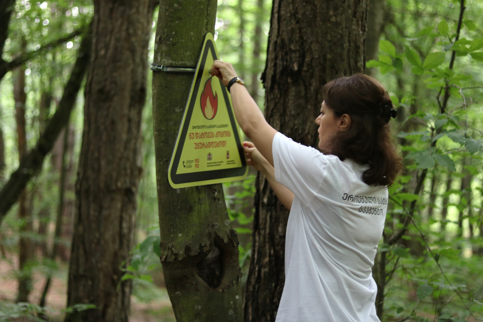 ხანძარსაშიშ უბნებსა და იმ ტერიტორიებზე, რომლებიც განსაკუთრებით დატვირთულია ტურისტულ სეზონზე, ეროვნული სატყეო სააგენტო ყოველწლიურად, მთელი ქვეყნის მასშტაბით, საინფორმაციო-გამაფრთხილებელ ნიშნებს ანთავსებს. მედიის წარმომადგენლებმა გამაფრთხილებელი ნიშნები დაბა სიონში, სახელწმიფო ტყეში განათავსეს და სამინისტროს წარმომადგენლებთან ერთად, კიდევ ერთხელ მოუწოდეს მოსახლეობას, დაიცვან ტყეში უსაფრთხოების წესები და დაემორჩილონ იმ აკრძალვებს, რომელიც ტერიტორიაზე საპიკნიკე ადგილების მოწყობისას და კოცონის დანთებისას ვრცელდება.