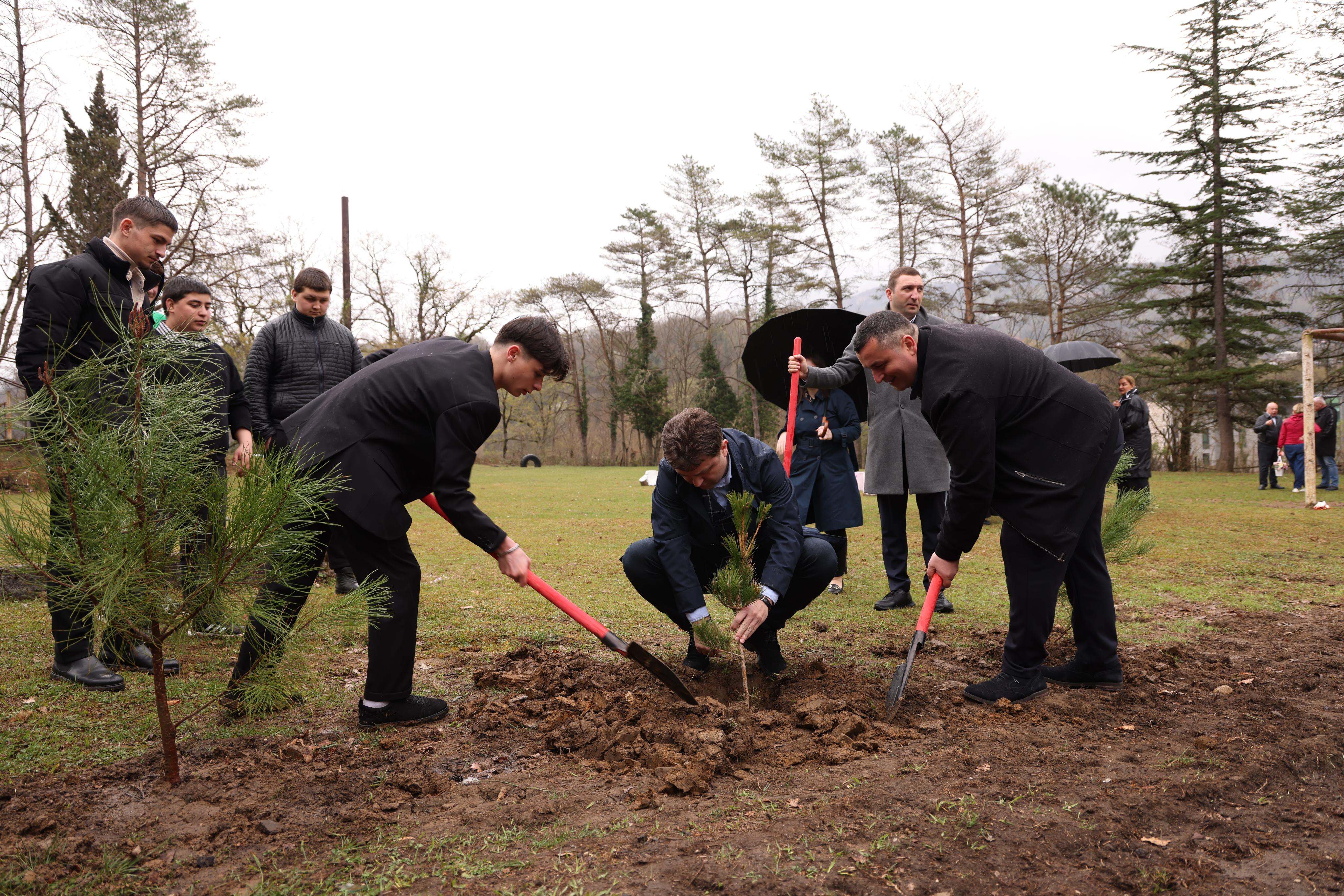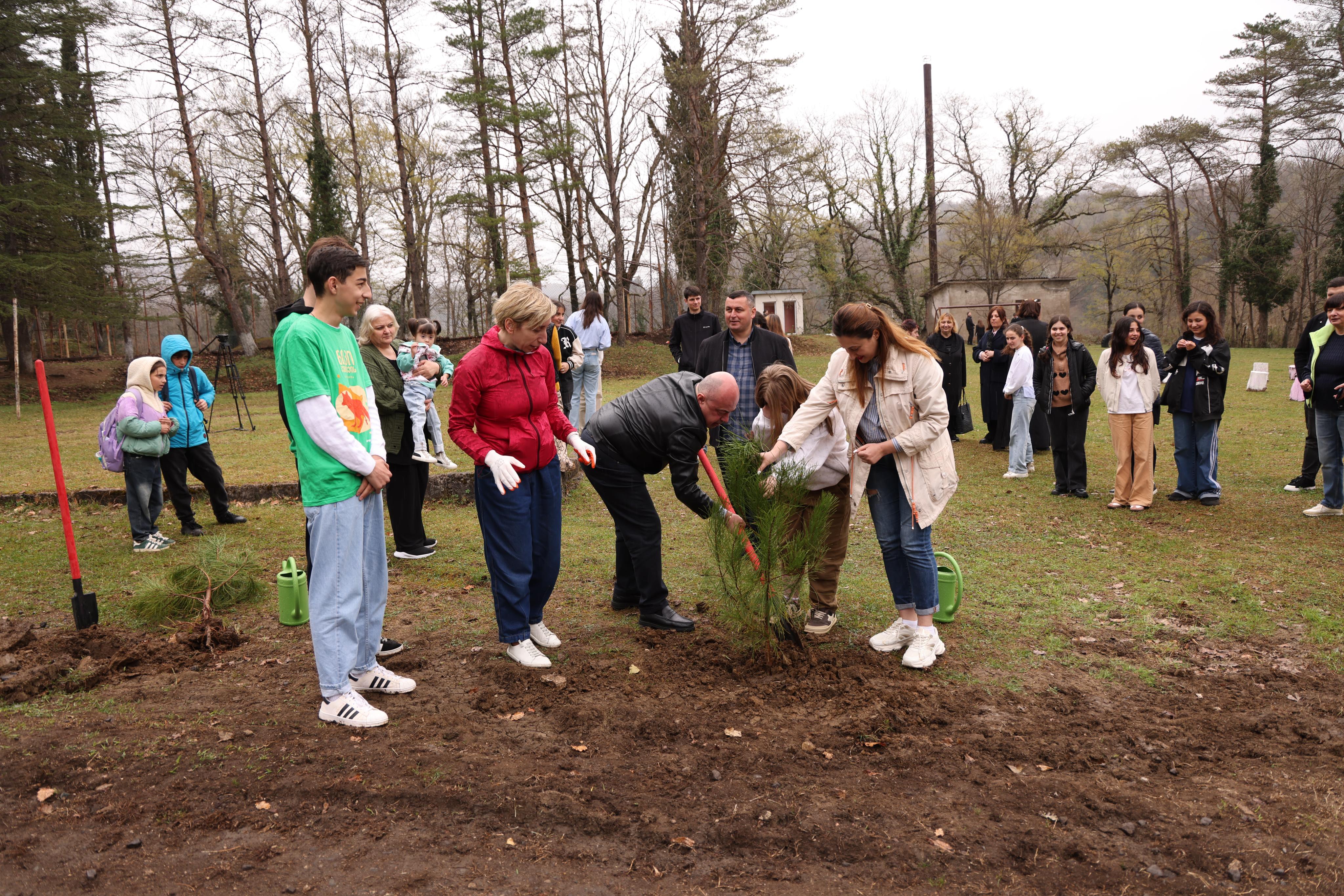 მოსწავლეებმა ტყის მნიშვნელობის, მისი მოვლა-აღდგენის შესახებ ინფორმაცია მიიღეს და სკოლის მიმდებარე ტერიტორიაზე სიმბოლურად 21 ძირი წიწვოვანი და ფოთლოვანი სახეობის ნერგი დარგეს, რომელთა მოვლა-პატრონობაზეც თავად იზრუნებენ. დარგვის აქციას ქუთაისის დღის ცენტრის - „ჯადოსნური სამყაროს“ დაუნის სინდრომის მქონე ბავშვები შეუერთდნენ.