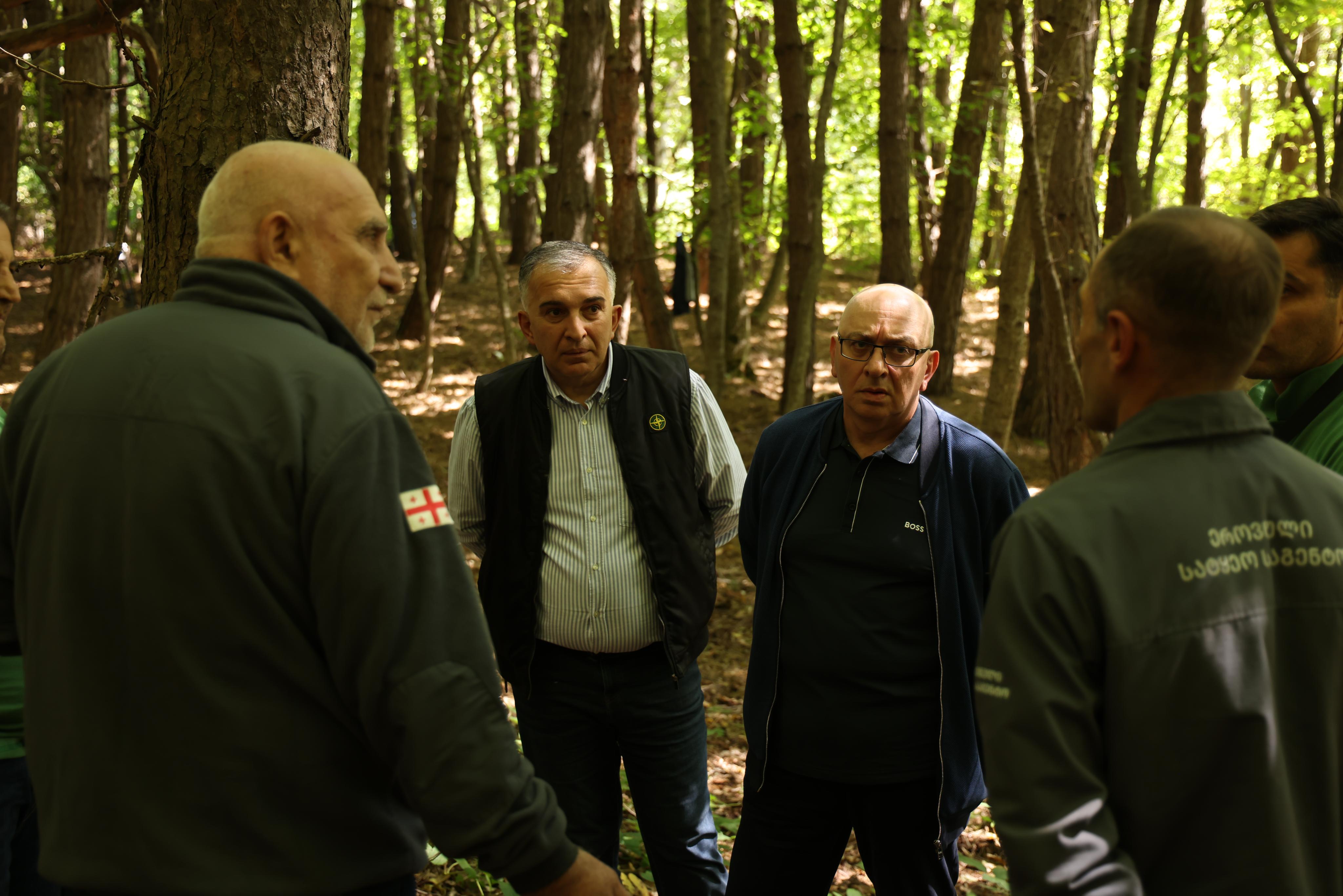 ეროვნული სატყეო სააგენტოს უფროსი კახა ცერცვაძე საველე სამუშაოების მიმდინარეობას ადგილზე გაეცნო.
